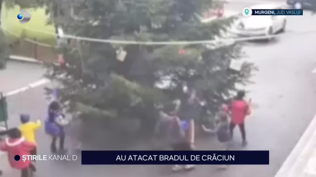 Scenele au fost surprinse în Murgeni, județul Vaslui. Bradul din centrul localității a fost devastat de mai mulți copii care au smuls decorațiunile și crengile. Imaginile au devenit virale pe internet!