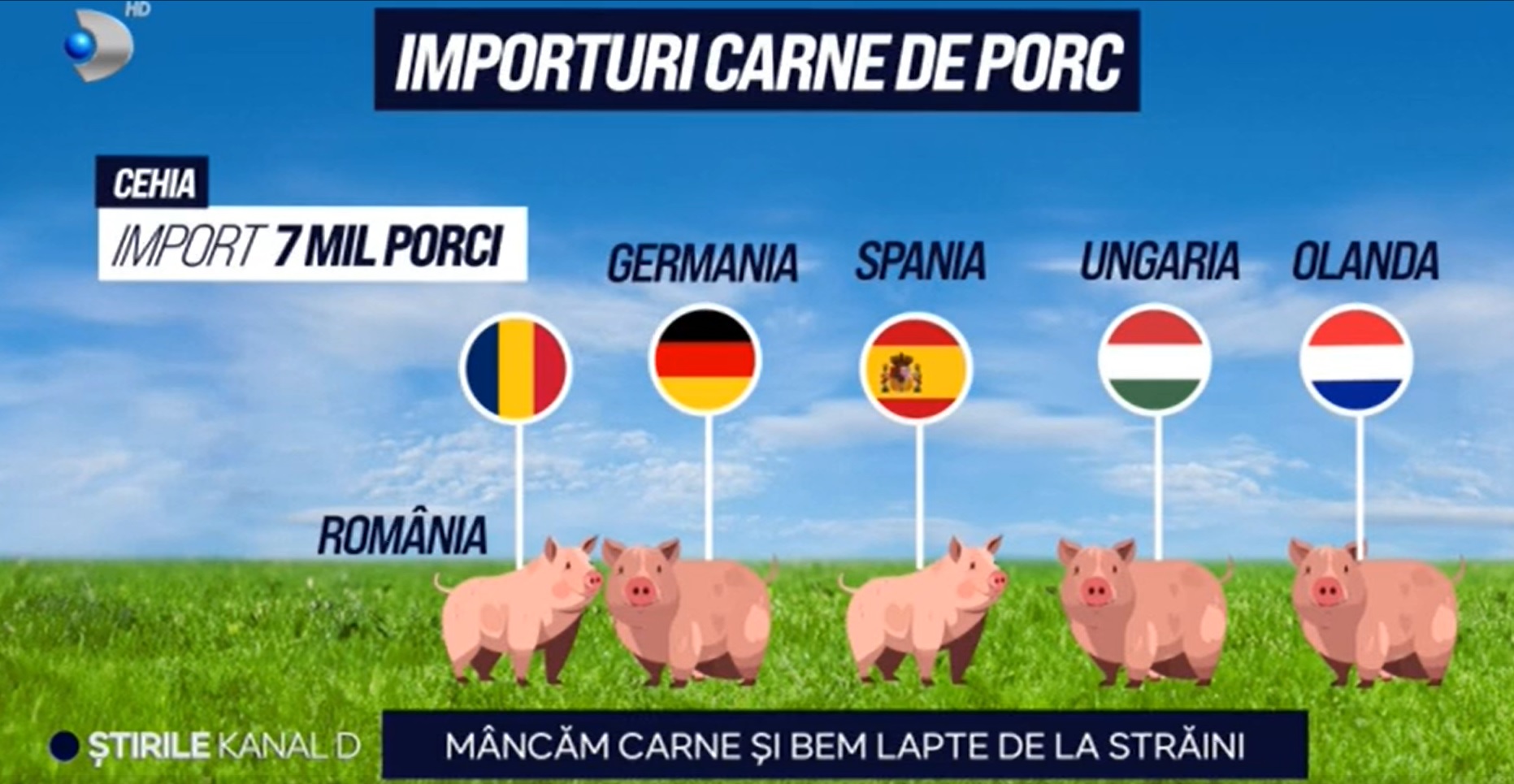De departe cel mai prost stăm la carnea de porc. Doar douăzeci la sută mai este românească. Anual, în România, se consumă nouă milioane de porci, iar peste șapte milioane sunt aduși din Spania, Germania sau Ungaria.