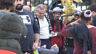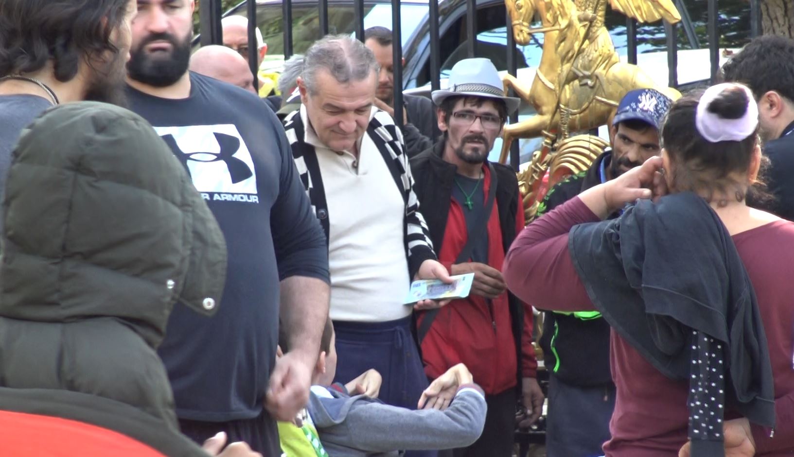 Scenele milosteniei s-au repetat si astazi, cand a impartit in stanga si in dreapta toti banii de prin buzunare.