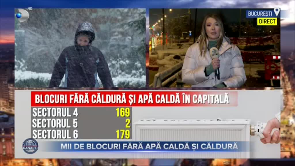 „Înlocuirea întregului sistem de termoficare din Capitală ar dura 20 de ani. Până atunci, țevile vechi se sparg, iar reparațiile par fără sfârșit. În câte blocuri din Capitală nu există nici acum apă caldă și căldură și care sunt cele mai afectate cartiere știe colega mea, Mădălina Bichir. Mădălina, te ascultăm”, a transmis Christian Sabbagh, prezentatorul Știrilor Kanal D.