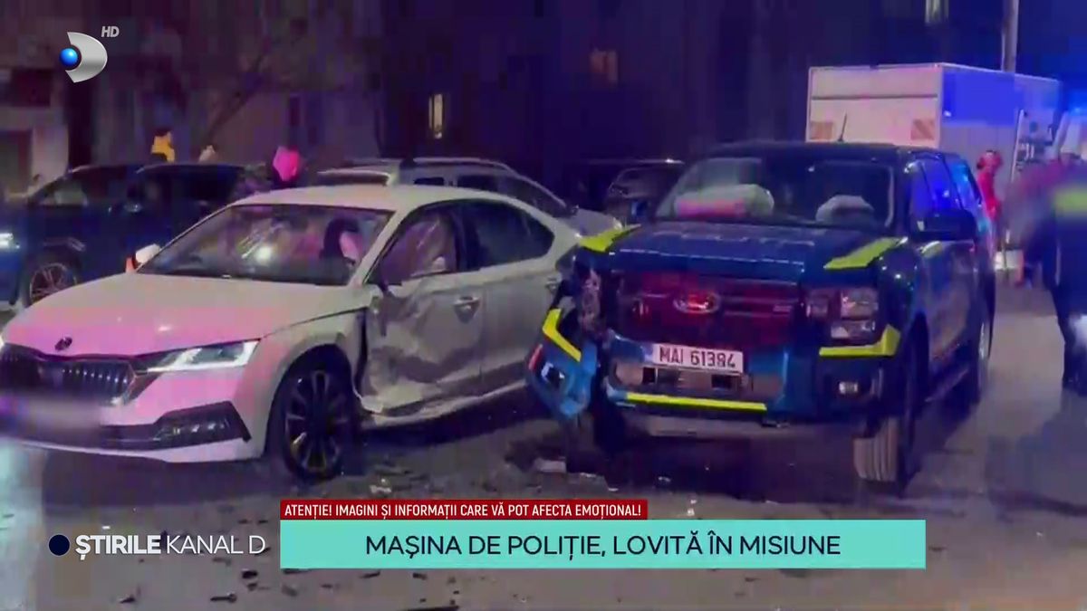 Incidentul s-a petrecut seara trecută, când autospeciala poliției avea pornite semnalele sonore și luminoase, semnalizând intervenția în curs.