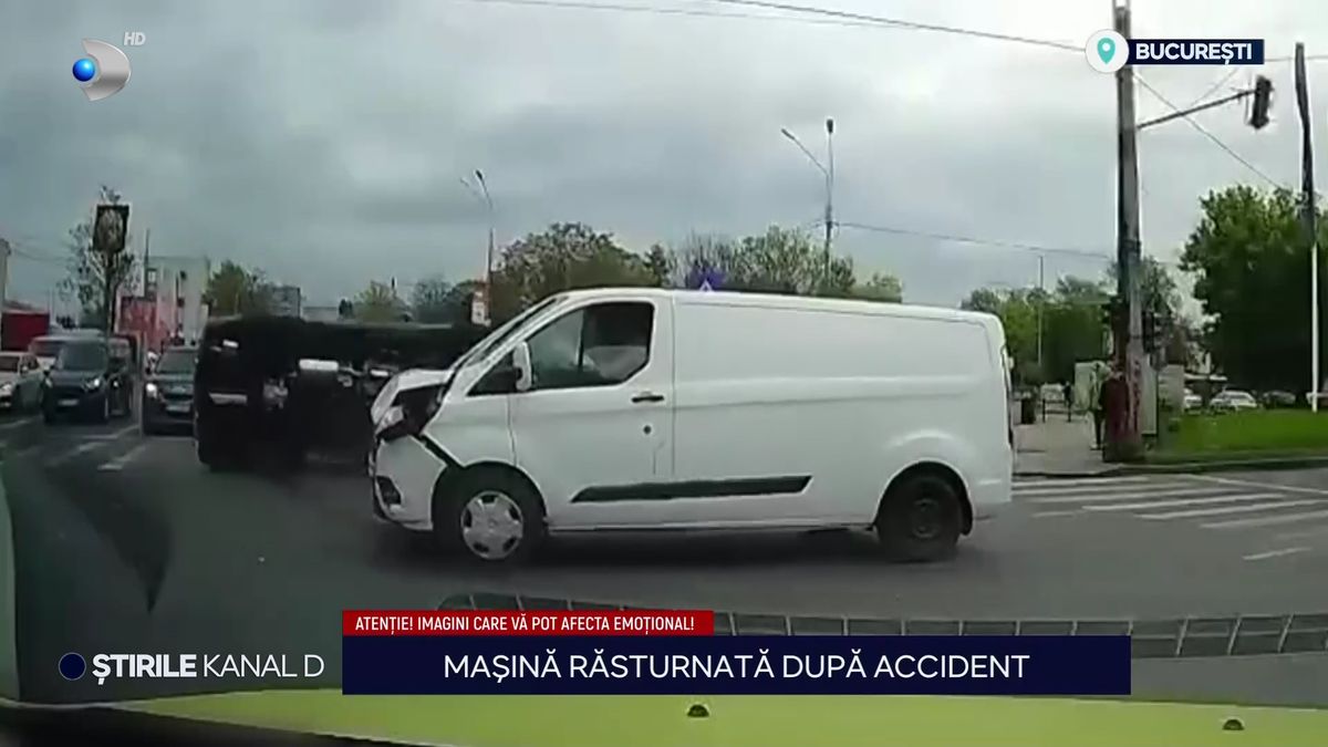 „O mașină s-a răsturnat într-o intersecție după ce a fost lovită, în plin, de o dubă care circula regulamentar. Totul s-a întâmplat într-o intersecție din București, iar momentul a fost surprins de o cameră de bord.