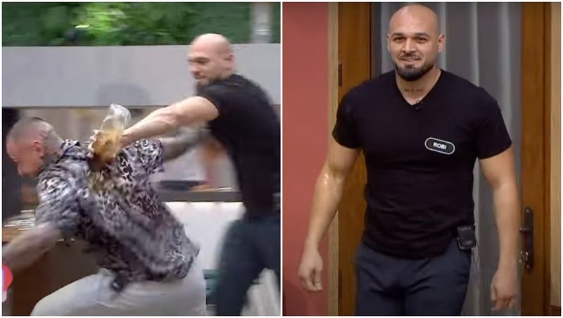 După „amenințarea” făcută, Sebastian nu a stat deloc pe gânduri și a trecut la fapte. Concurentul a luat un vas în care se afla un lichid și l-a aruncat pe Robi, udându-l pe tricou.