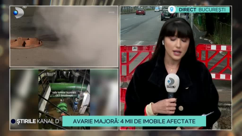 Noi suntem acum în zona Grozăvești din Capitală, unul dintre cartierele afectate de avaria majoră. Au fost pierderi masive de apă în rețeaua de încălzire, iar centrala nu a putut fi repornită. Sala de turbine a fost inundată iar asta se traduce prin mii de bucureșteni care au rămas fără apă caldă. Vorbim despre aproape 4 mii de imobile, din cele 10 mii de racordate la sistemul centralizat.