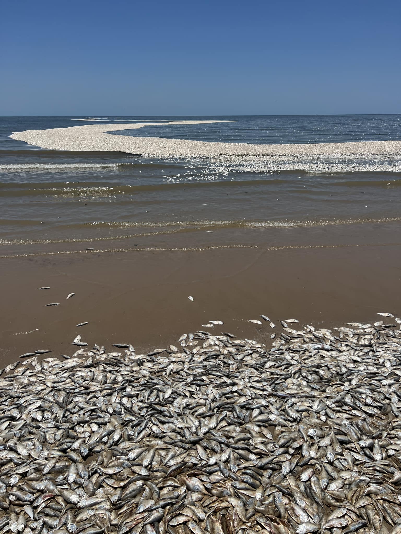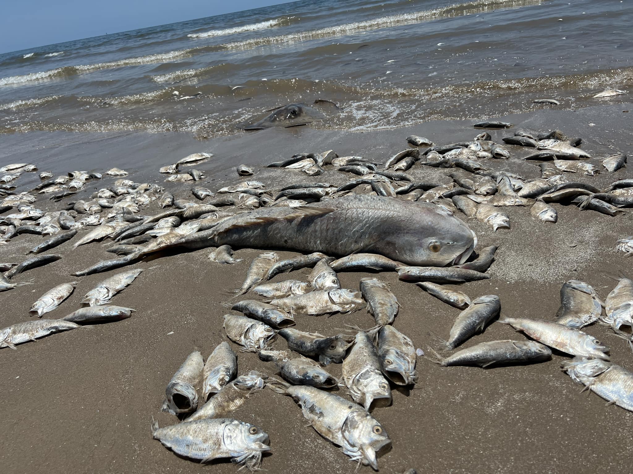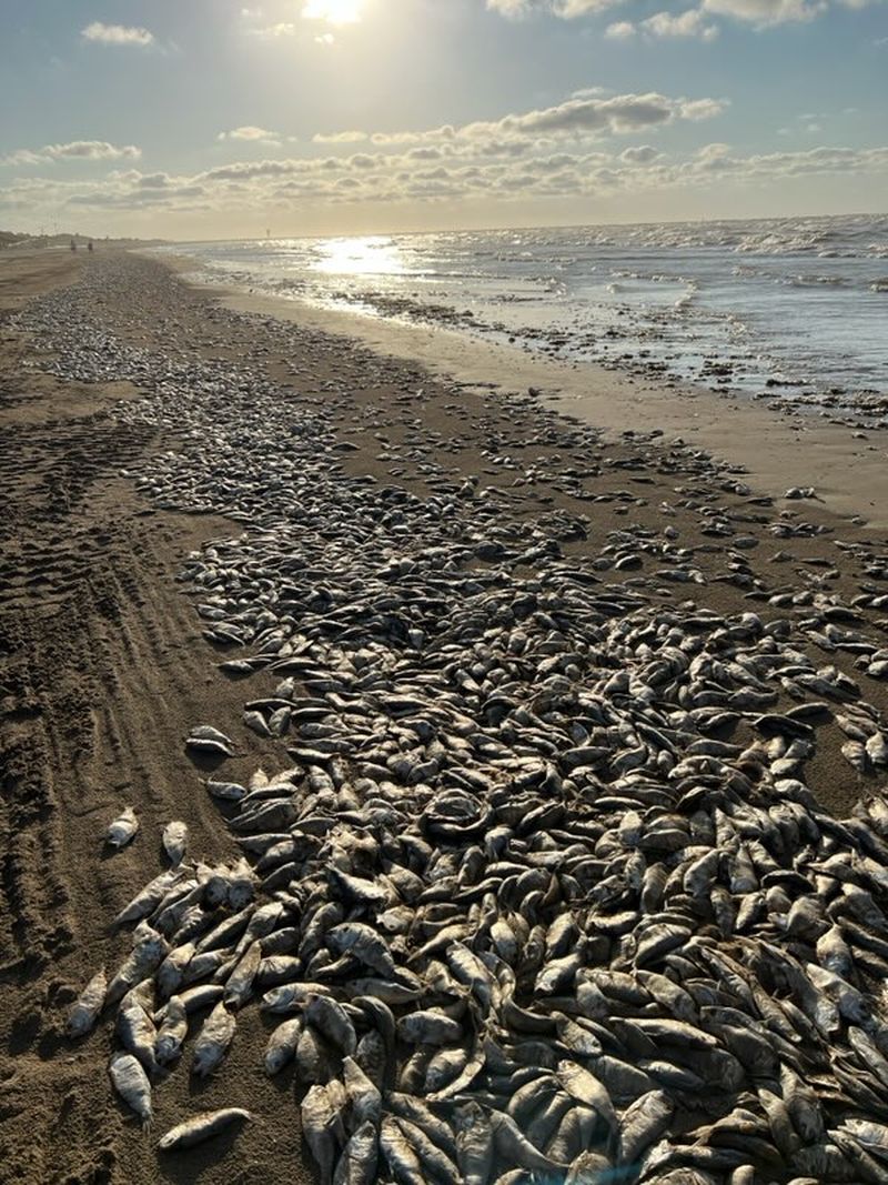Mii de pești morți au ajuns pe o plajă de pe coasta golfului Texas zilele trecute, acoperind țărmul cu cadavre în putrefacție, după cum arată fotografiile șocante făcute de localnici.