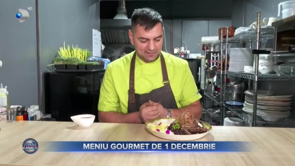 - Aici avem un conglomerat de legume proaspete, plecând de la ceapă, dovlecel, păstârnac, țelină, morcovi. Cam așa arată vedeta noastră de 1 decembrie. Piept de porc, cu legume tajin”, a mai arătat Paul Novac.