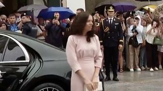 Toate privirile au fost țintite către Mirabela Grădinaru, partenera președintelui Nicușor Dan. La Salzburg, prima doamnă a României a purtat o ținuta discretă și elegantă, o rochie roz pudrat cu mâneci trei sferturi, croială simplă, lungime medie, sub genunchi. Întreaga ținută a fost accesorizată cu o pereche de pantofi albi cu toc mediu și o poșetă plic în tonuri neutre.