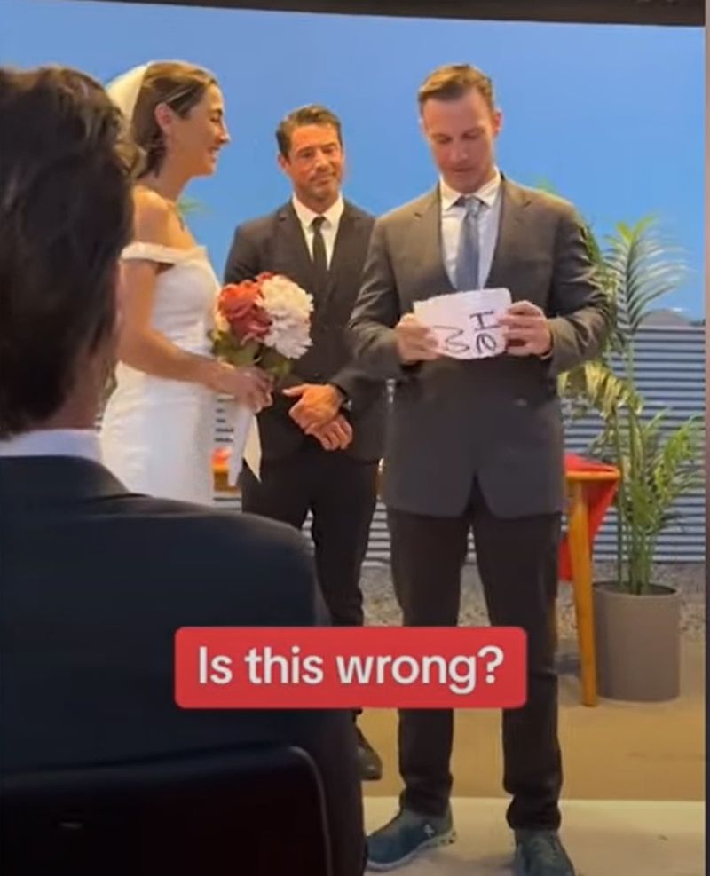 Un mire a stârnit reacții vehemente pe rețelele de socializare pentru gestul făcut în fața altarului, chiar în momentul depunerii jurămintelor pentru toată viața. Mulți au considerat deplasată gluma, iar mireasa s-a considerat "umilită" după reacția pe care a avut-o în fața invitaților.