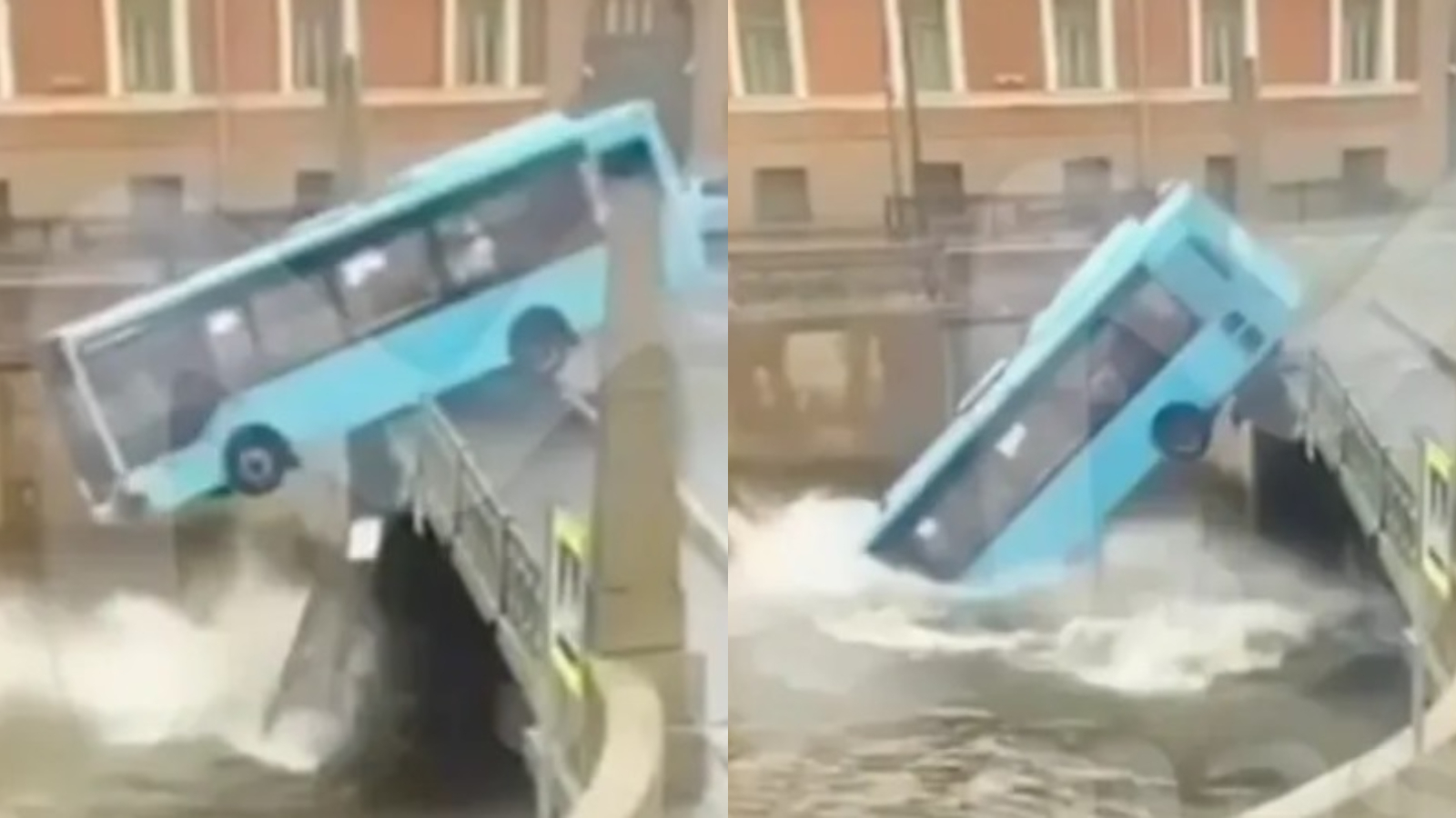 Horrifying footage shows the moment a bus crashed off a bridge and into the Moyka River in Saint Petersburg, Russia.