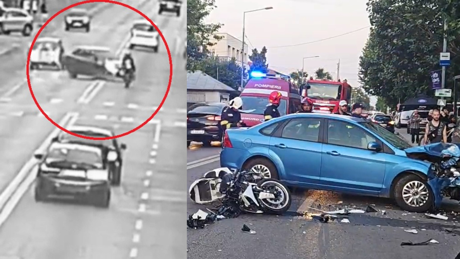În imaginile surprinse de camere de supraveghere aflate în zonă se observă cum șoferul i-a tăiat calea agentului care circula regulamentar, fără să îi acorde prioritate.