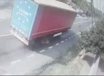 VIDEO- Momentul în care șoferul de TIR evită spectaculos impactul: