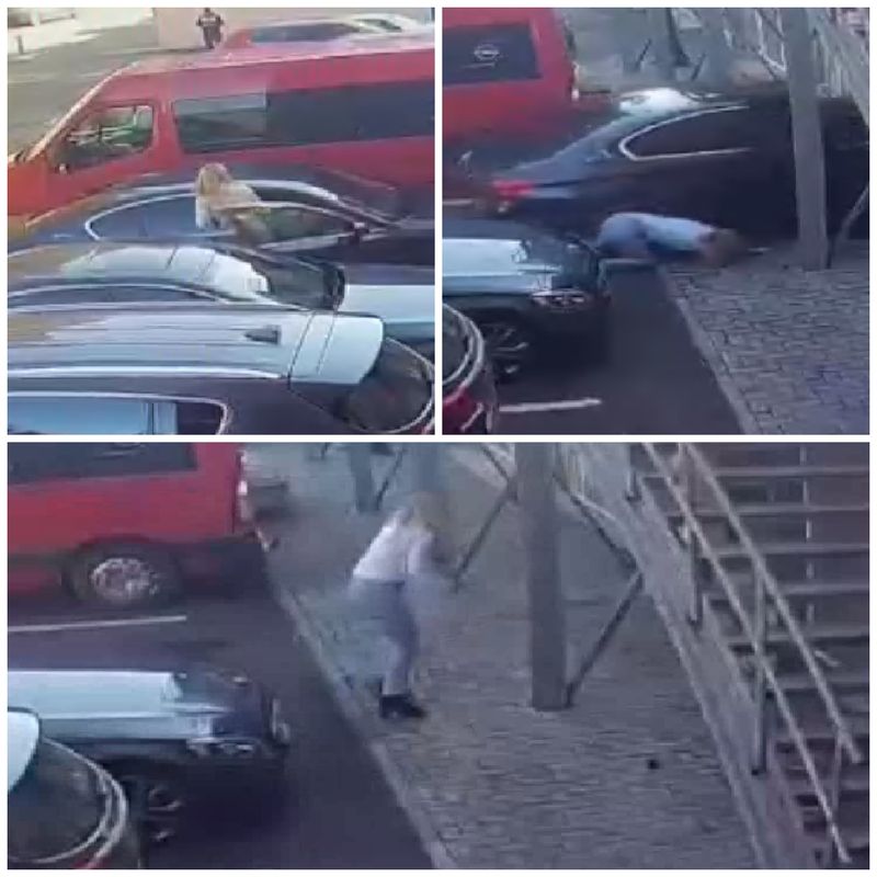 Camerele de supraveghere au surprins și momentul în care bărbatul calcă accelerația autoturismului. În imagini se observă cum, cu puțin timp înainte de dezastru, o femeie coboară din mașină și încearcă să ia ceva din autoturism.