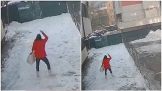 1 din 4 | Momentul șocant în care o femeie de 35 de ani e ucisă de gheața căzută de pe bloc