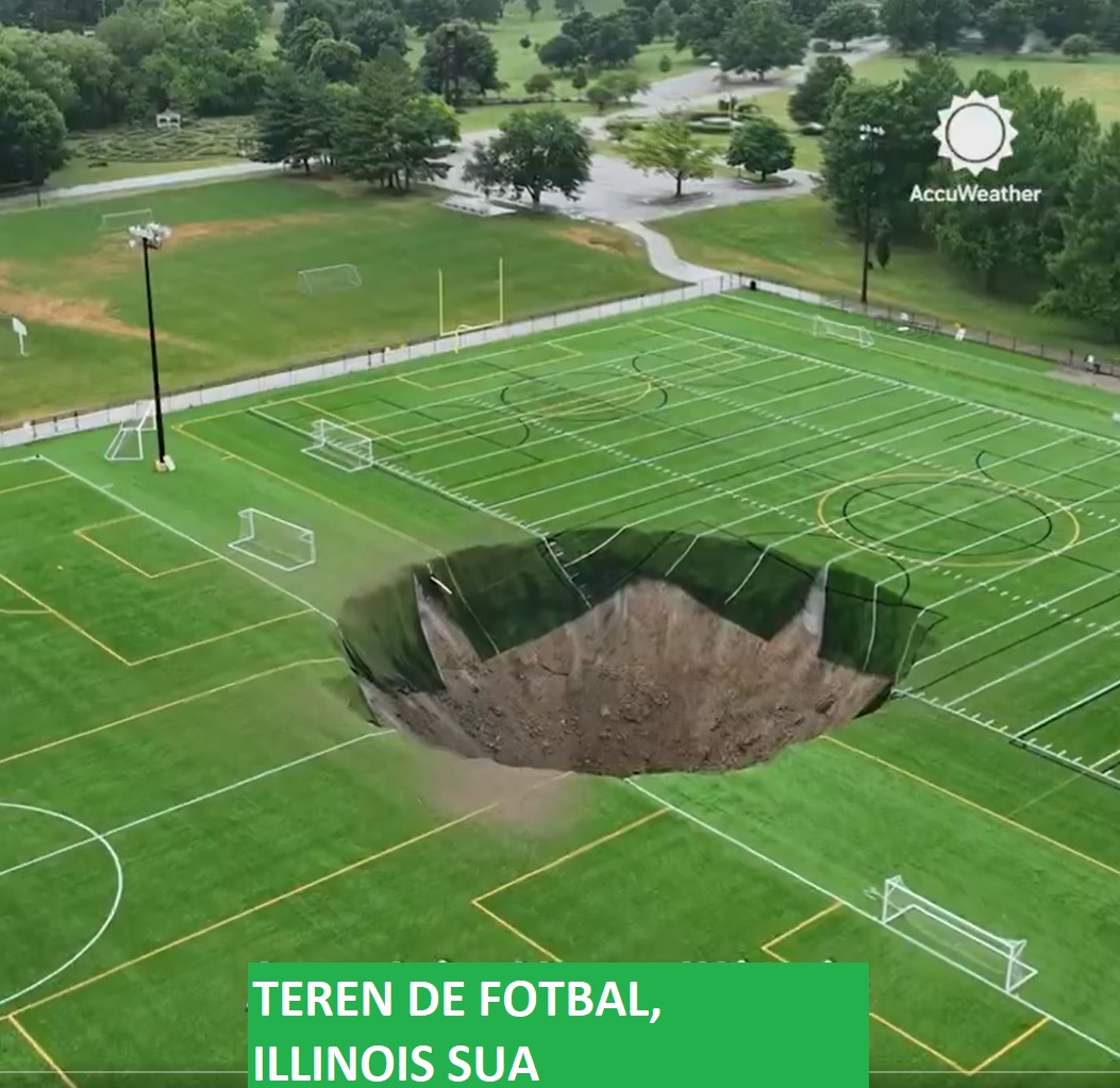 Un teren de fotbal din Illinois, situat deasupra unei mine, a fost închis după ce o gaură uriașă a înghițit pământul, lăsând un crater de peste 30 de metri lățime în mijlocul unui parc comunitar.
