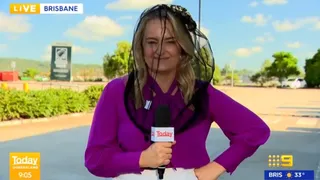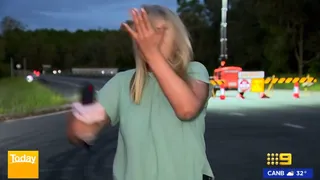 Andrea Crothers, o reporteră a postului Australia’s Today Show, a prezentat la TV recentele inundații din Brisbane, moment în care o insectă enervantă i-a atins fața.