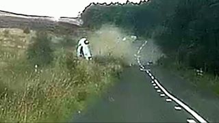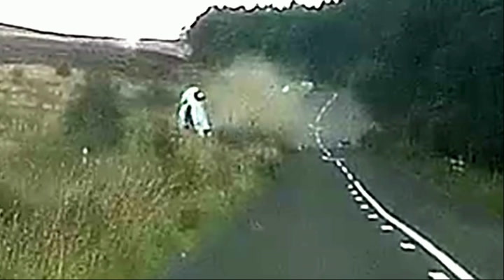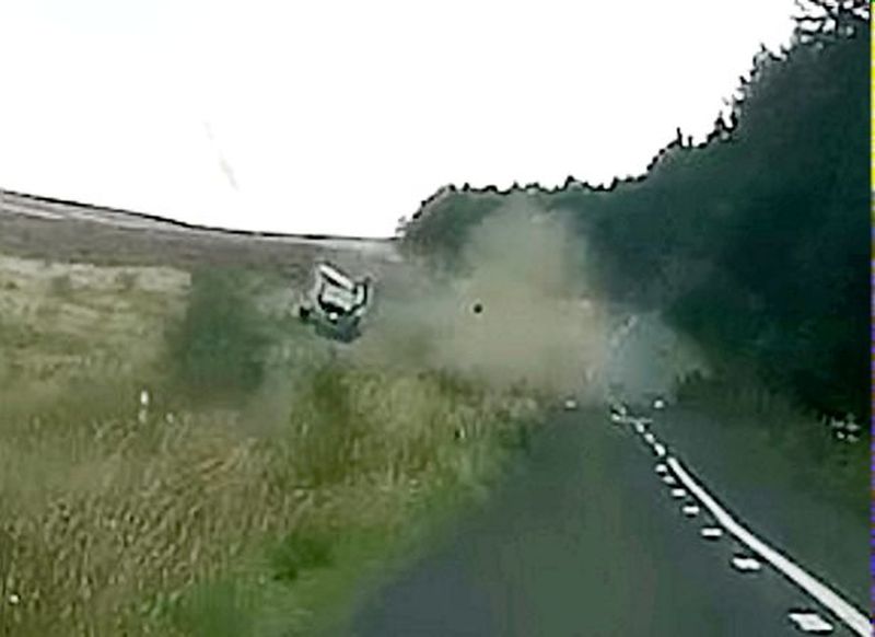 Evenimentul a avut loc în Anglia, iar șoferul, Jackson Davis, în vârstă de 20 de ani, a spus după accident că a dorit să evite o coliziune cu o altă mașină și așa a ajuns să facă acele rotații înfricoșătoare cu mașina.