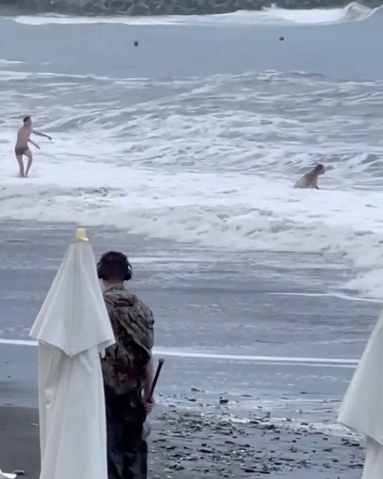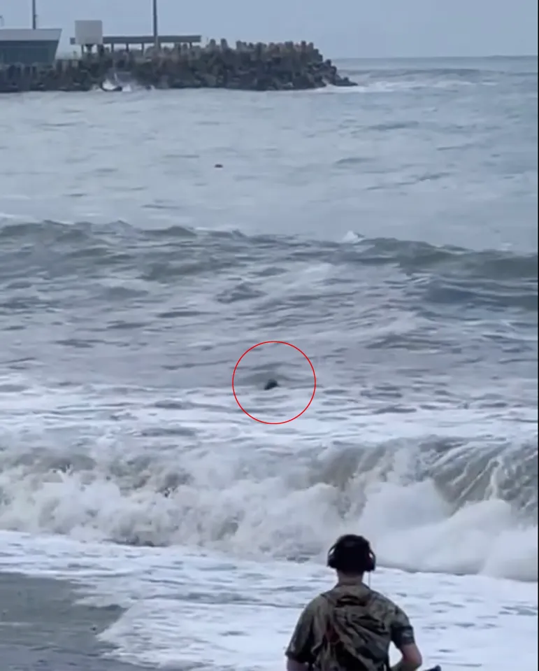 Rusoaica încearcă să se lupte să se ridice în picioare, însă un curent o smulge mai departe de țărm.