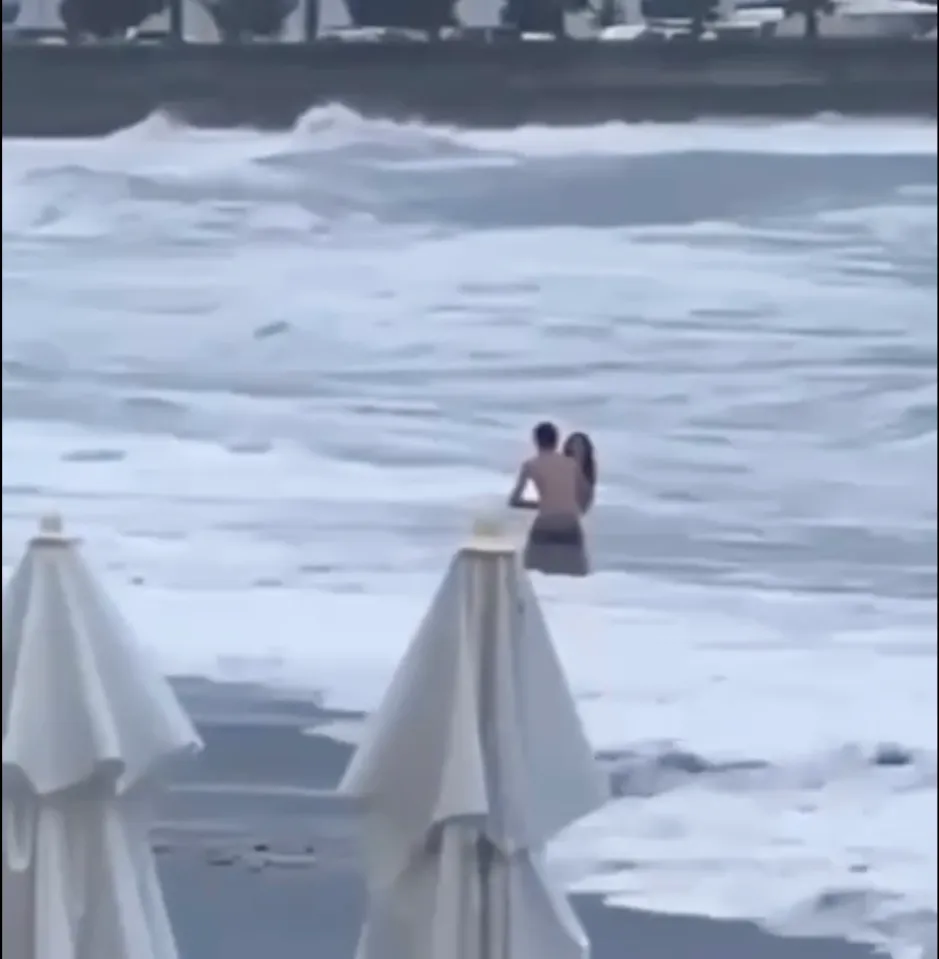 Momentul tragic în care o tânără de 20 de ani este smulsă de valuri în Marea Neagră sub ochii iubitului ei a fost filmat de turiștii de pe marginea plajei.
