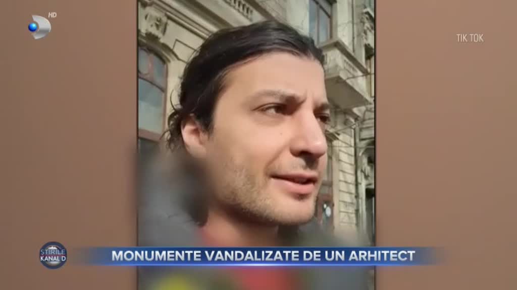El este individul care în urmă cu 2 seri a mâzgâlit cu vopsea două biserici din sectoarele 1 și 3, memorialul renașterii și statuile din Piața Revoluției. Tânărul a desenat și scris lucruri obscene pe monumentele istorice cu un spray pentru grafitti de culoare albastră, apoi s-a făcut nevăzut. Anchetatorii au analizat însă imaginile surprinse de camerele de supraveghere și au reușit să îi dea de urmă în doar câteva ore. L-au încătușat și dus la audieri, însă anchetatorii abia au reușit să se înțeleagă cu el.