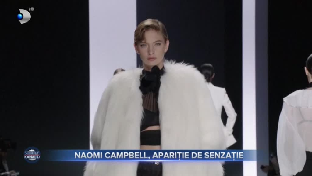 Punctul culminant a fost atins de intrarea celebrei Naomi Campbell pe podium. La 53 de ani și mamă a doi copii, supermodelul a făcut furori într-o creație uluitoare de budoar, din dantela și voal transparent.