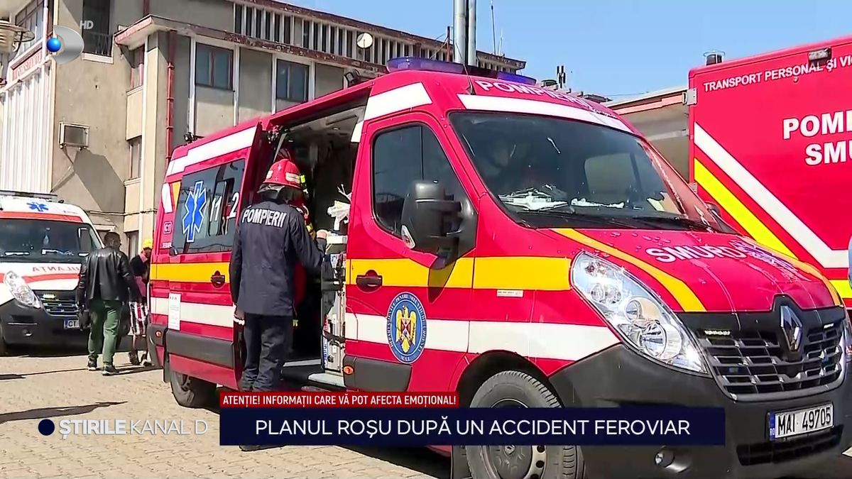 „În gara din Constanța a fost activat Planul Roșu de intervenție după ce două trenuri s-au ciocnit. Zeci de ambulanțe și echipaje de urgență s-au deplasat la fața locului. 28 de turiști au fost evaluați medical, iar 7 dintre aceștia au fost transportați la spital. Vă averizez, urmează imagini cu un puternic impact emoțional”.