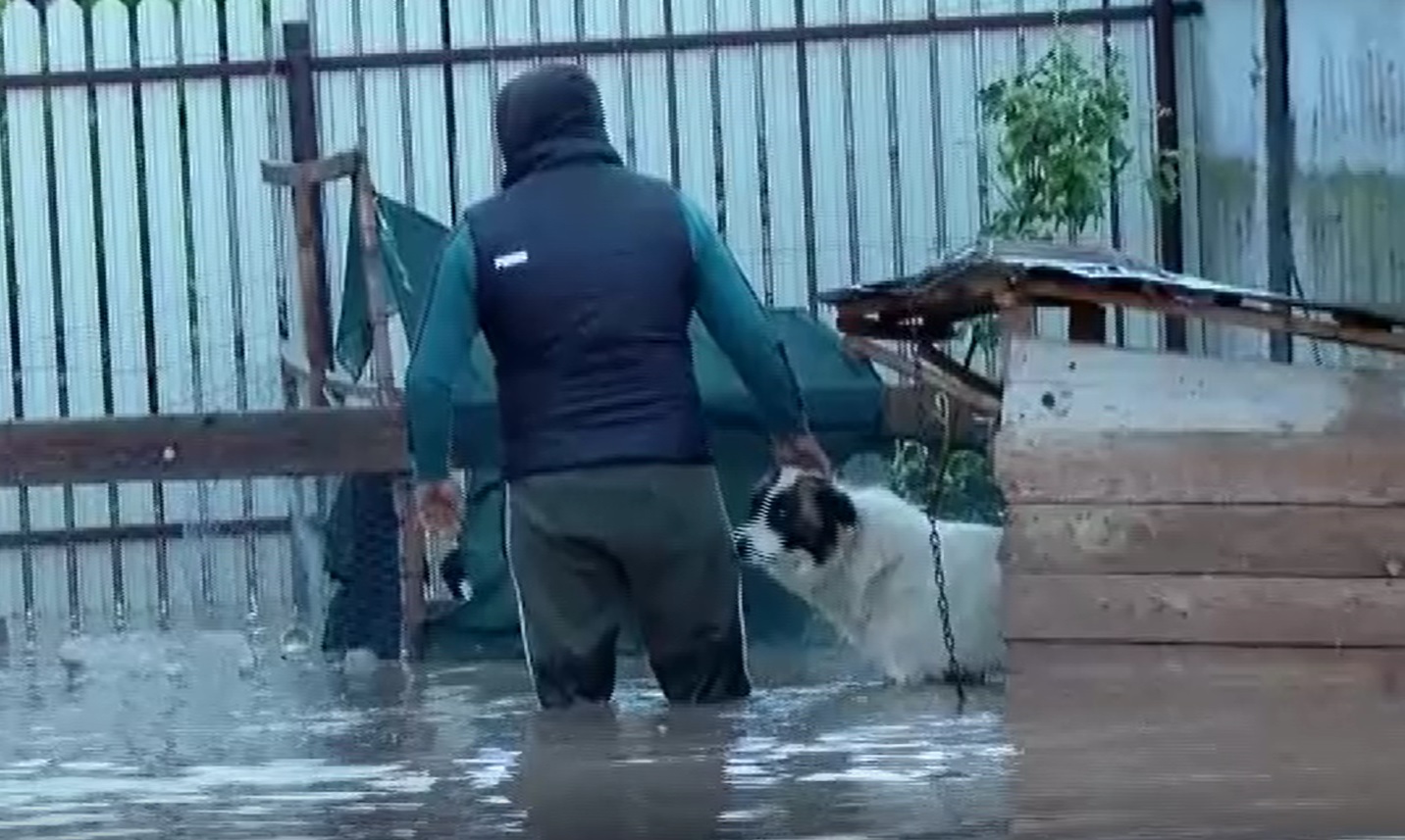 Imediat ce s-a oprit ploaia, oamenii s-au trezit cu gospodăriile inundate. Pe strada din acest cartier de pildă, am intrat cu excavatorul. Cu apa până la genunchii în propria curte, desculți și neputincioși, zeci de localnici au încercat să-și salveze animalele din gospodărie și să împiedice apa să ajungă în case: „A luat pocii, puii, tot a luat. Ce să facem, stăm în stradă până se oprește apă.