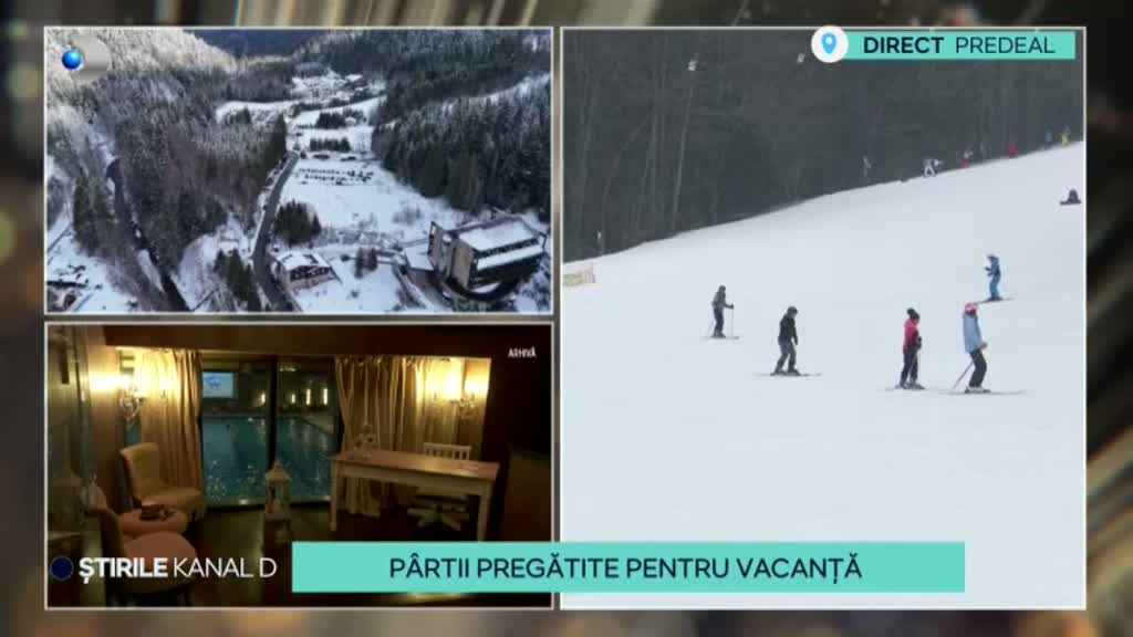 „Ninsorile au revenit la munte. În Predeal ninge abundent, spre bucuria turiștilor amatori de sporturi de iarnă. Care este starea pârtiilor, dar și cum s-au pregătit hotelierii pentru următoarea vacanță a elevilor, aflăm de la Adrian Jătăreanu”.