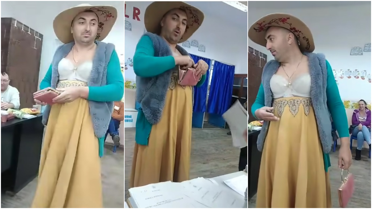 Scene halucinante au avut loc într-o secție de vot din județul Botoșani. Un bărbat îmbrăcat în fustă și cu un sutien la vedere a votat în Alegerile parlamentare 2024. Cine este personajul și ce mesaj a transmis?