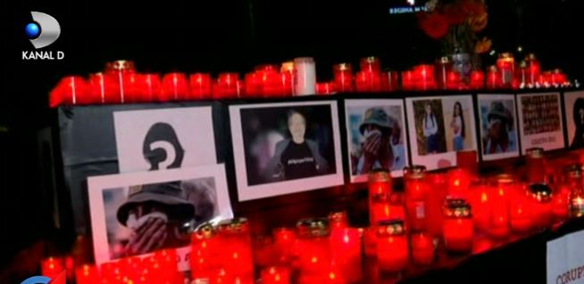 Fotografiile celor doua fete din Caracal au fost asezate langa victimele tragediei de la Colectiv si langa poza lui Ilie Gazea, protestatarul din Teleorman, care a murit la cateva zile dupa ce a fost gazat mitingul diasporei din 2018.