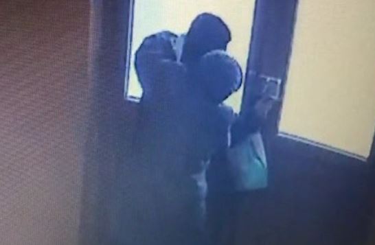 Imaginile o arata pe bunica, in varsta de 79 de ani, cum intra in imobil. Hotul insusi ii deschide usa si o urmeaza indeaproape. Tâlharul intra in lift, insa femeia decide sa nu urce in acelasi timp cu el.