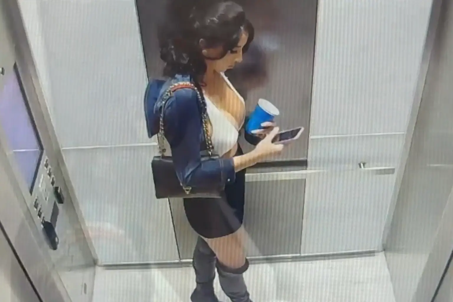 Imaginile surprinde de camerele de supraveghere din clădire o arată pe suspectă când a intrat cu bărbatul în lift și mai târziu când a plecat singură.