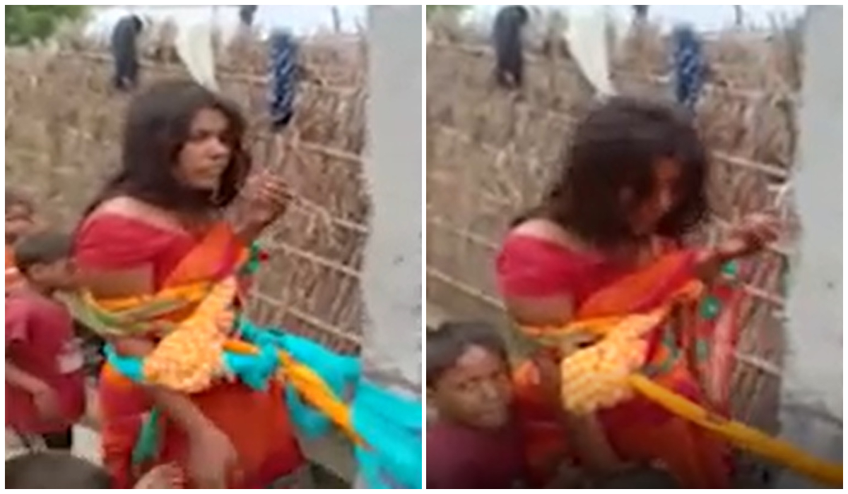 În videoclipul devenit viral, cei doi amanți, locuitori ai satului Sakarar din Bihar, pot fi văzuti cum sunt legați de un stâlp cu eșarfe lungi (denumite sari), în timp ce copiii femeii se țin de rochia ei și plâng.