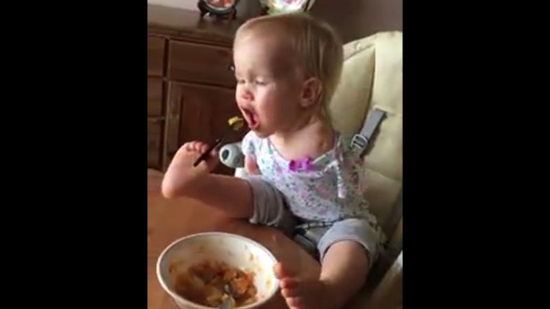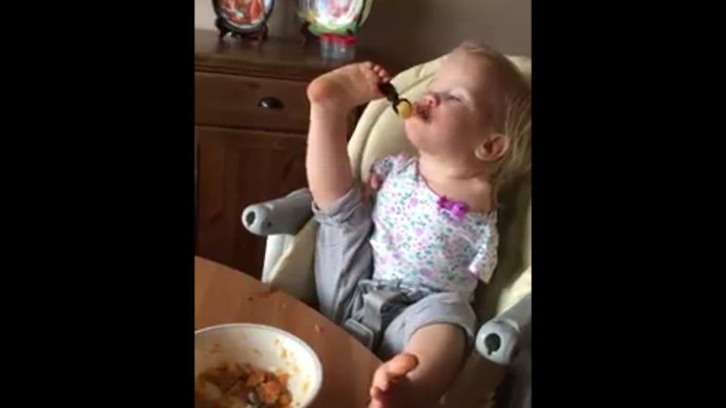 Cand un copil mic incearca sa manance singur cu lingura, de cele mai multe ori o parte din mancare ajunge pe fata lui, iar cealalta va fi imprastiata pe podea. Nu este insa si cazul micutei Vasilina, fetita care nu are maini si care invata sa manace singura, folosindu-si picioarele.