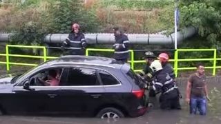 Strazile din centrul istoric al Brasovului s-au transformat in rauri, iar oamenii au fost nevoiti sa mearga prin apa. In tot acest haos, unii au ales sa faca haz de necaz. Pe o strada inundata din centrul orasului, un tanar a fost filmat in timp ce facea surfing.