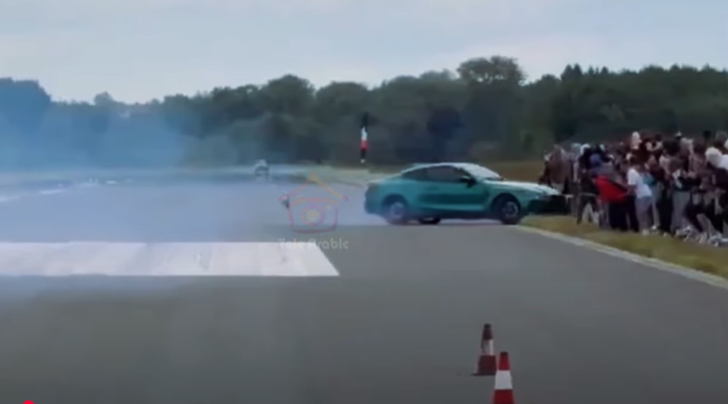 Potrivit presei locale, un BMW verde tocmai pornise de la linia de start, când șoferul a pierdut controlul mașinii, iar bolidul a derapat.