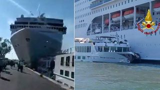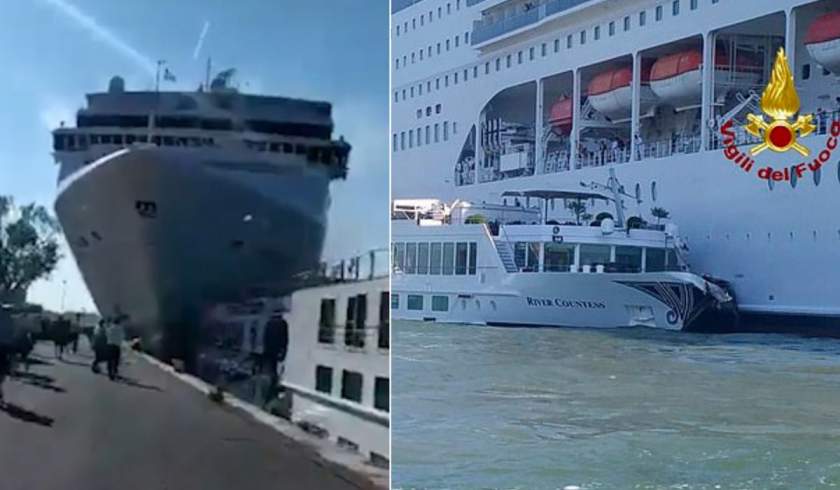 Momentul a fost surprins de un martor, iar în imagini se poate observa cum nava uriașă se apropie cu viteză și o izbește pe cealaltă. Potrivit reprezentanţilor companiei care deţine nava de croazieră era pe cale să ajungă într-un terminal de pasageri din Veneţia, însă a întâmpinat o problemă mecanică.