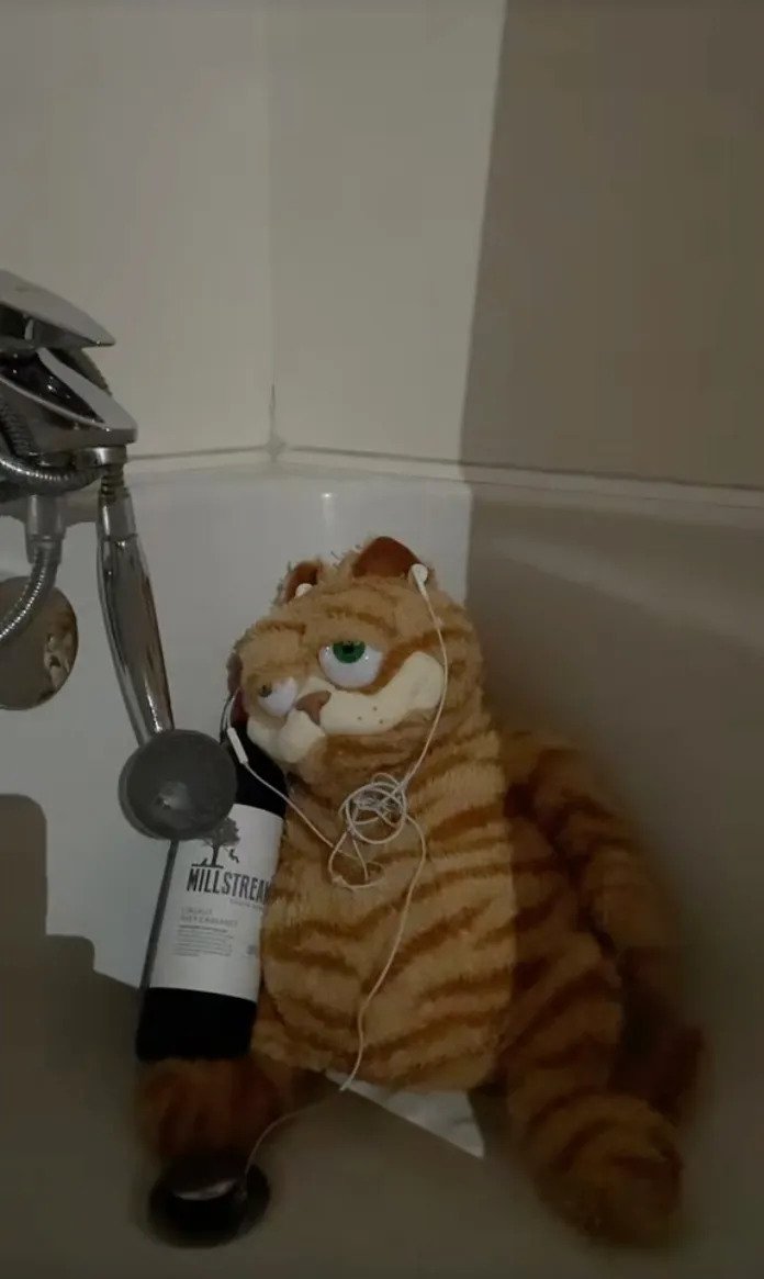 Contul de TikTok @wonkygarfield prezintă o pisică de jucărie care arată precum Garfield, însă care are o față tristă și ascultă muzică sumbră, prin căști cu fir. Deși poate părea ciudat, motanul... se bucură de tristețe.