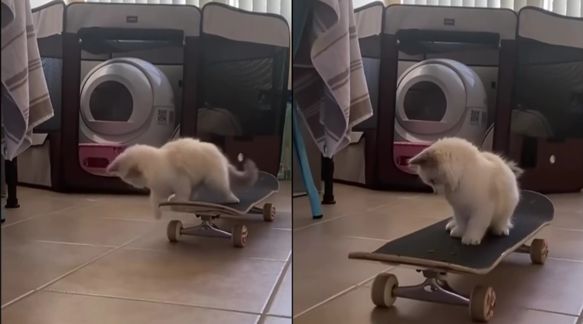 „Skateboarding-ul este un sport dificil chiar și pentru oameni, dar o pisică ne demonstrează contrariul. Se dă pe placă la fel ca un profesionist. Imaginile zilei le vedem chiar acum”, a spus Cristina Dorobanțu.