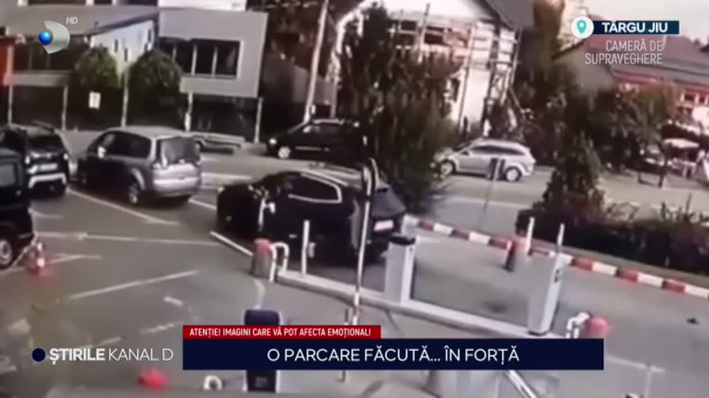 Un incident neobișnuit a fost surprins de camerele de supraveghere din parcarea unui centru comercial din Târgu Jiu. O șoferiță în vârstă de 33 de ani a pierdut controlul mașinii la intrarea în parcare, rupând bariera de acces.