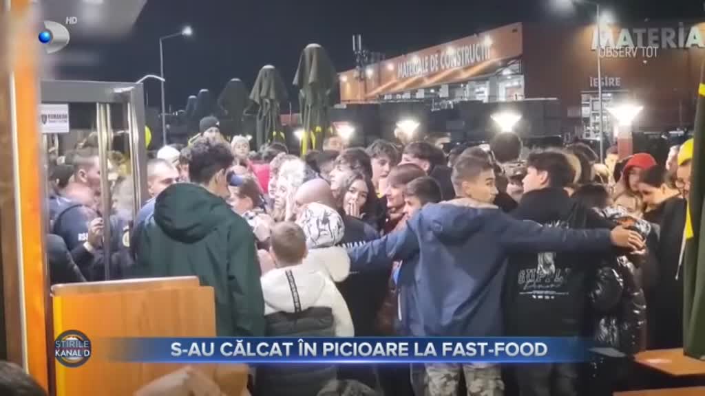 „Deschiderea unui fast-food a provocat haos la Drobeta-Turnu Severin! Sute de persoane s-au îmbrâncit și chiar s-au luat la ceartă cu paznicii pentru a intra primii în noul restaurant. Nici frigul sau cozile uriașe nu i-au dat pe înapoi pe oameni.