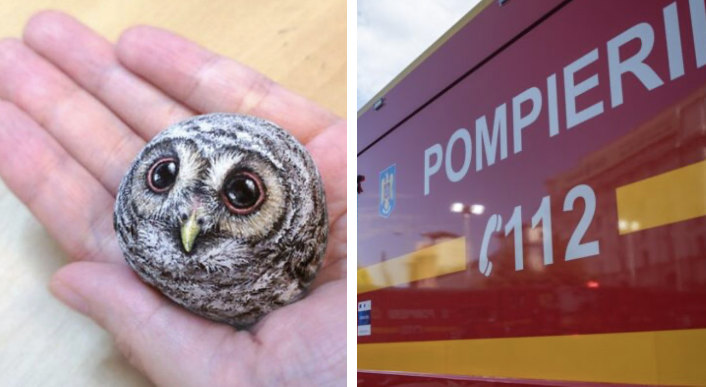 Operațiune de salvare pentru un pui de cucuvea, după ce acesta a căzut din cuib. Asistenții SMURD și pompierii militari din Galați au reușit să îl salveze la timp înainte de a fi atacat de alte animale.