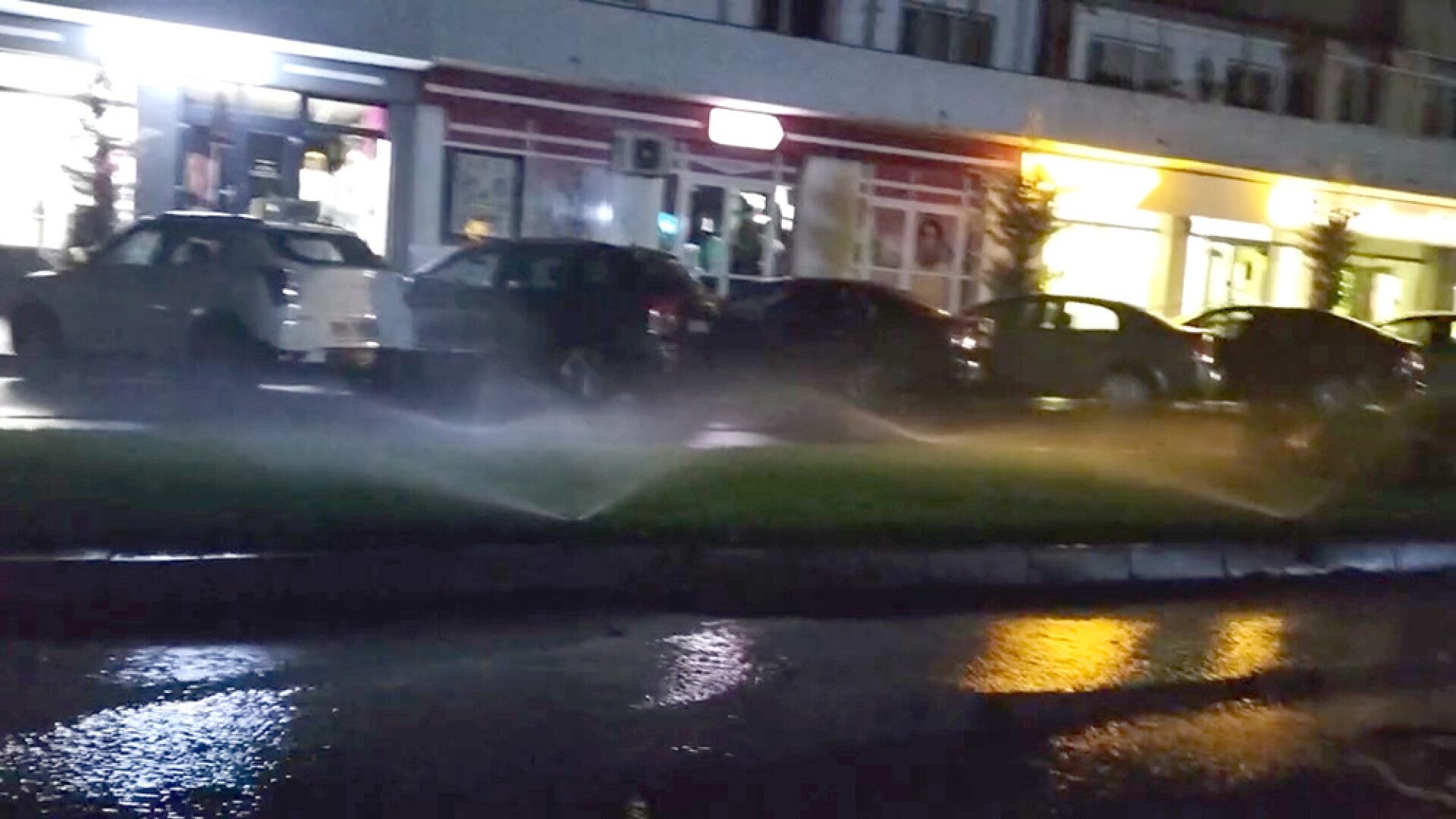În ciuda codului roșu de ploi care era în vigoare și a faptului că precipitațiile cădeau cu găleata, stropitorile care udă spațiul verde din localitate au pornit la putere maximă.