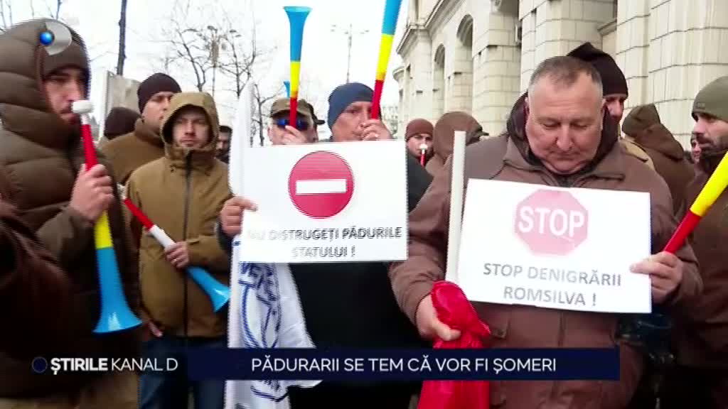 Pădurarii au protestat miercuri în fața Ministerului Mediului, disperați că ar putea rămâne șomeri. Oamenii și-au strigat nemulțumirea în stradă.