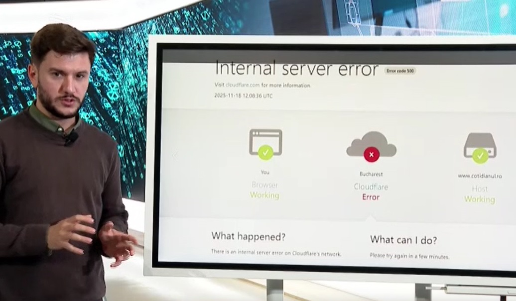 Cauza acestei situații a fost o defecțiune a sistemului de securitate cibernetică Cloudflare, care asigură protecția pentru un număr mare de site-uri și platforme la nivel global, inclusiv în România. Din această cauză, mai multe site-uri de știri și alte servicii online nu au putut fi accesate timp de până la patru ore în această după-amiază.