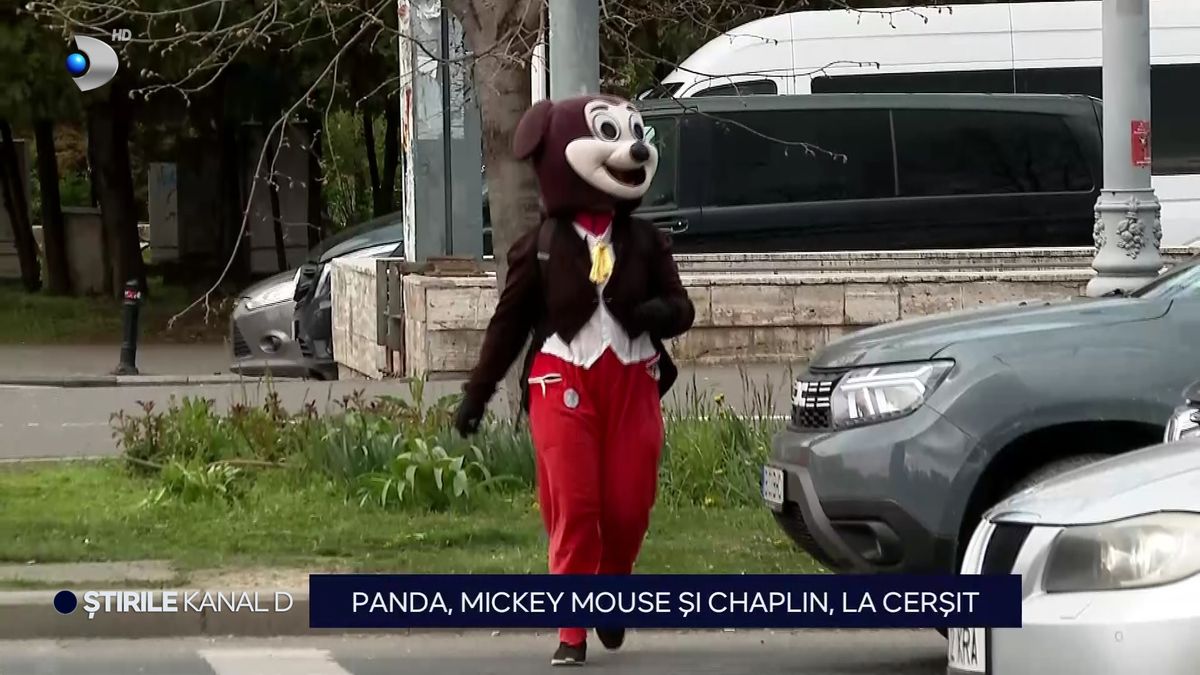 „În goana după bani, cerșetorii se reinventează mereu. Mai nou, pe la semafoare, dăm peste tot felul de personaje de film sau din desene animate. Mickey Mouse și Charlie Chaplin din răsputeri să smulgă zâmbete și bani. Șoferii s-au întâlnit, recent, și cu ursul panda”.