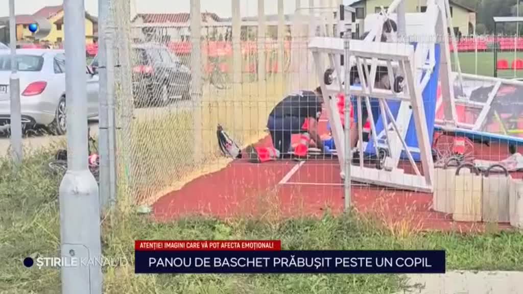 Un copil din Alba Iulia a ajuns la spital după ce panoul de baschet s- a prăbușit peste el. Băiatul de doisprezece ani era pe terenul de sport în incinta unei școli și a fost lovit puternic de panoul care s- a desprins brusc de pe stâlp. Medicii sosiți la caz au constatat că avea răni la o mână și l-a u dus la spital. Imaginile au apărut abia acum, deși incidentul a avut loc la sfârșitul lunii august. Polițiștii au început să ancheteze cazul abia după o săptămână, a transmis Cristian Sabbagh.