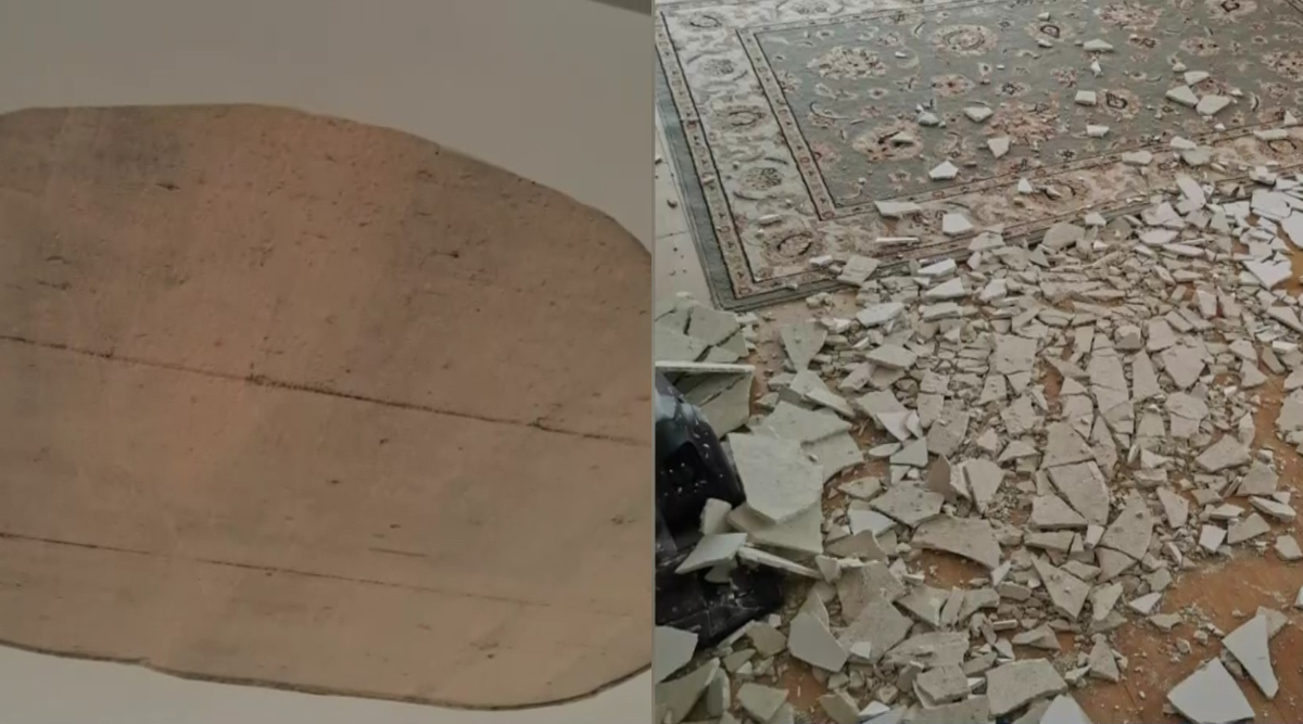 O familie din Dej s-a mutat într-un bloc nou, dar nu se simte deloc în siguranță. Oamenii s-au trezit de două ori cu bucăți de tavan căzute pe podea.