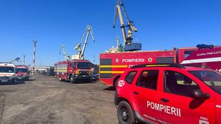 Echipajele ISU intervin pentru lichidarea unui incendiu izbucnit la o navă, aflată în reparații, la cheu, în șantierul naval Midia.
