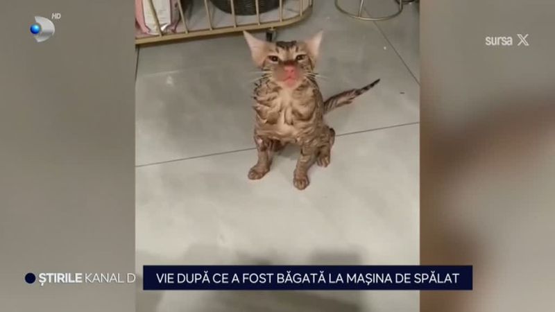 Se pare că felina s-a ascuns în cuvă mașinii de spălat înainte ca programul să fie pornit, iar stăpâna nu a observat prezența acesteia. Din fericire, ciclul de spălare a durat doar 10 minute, iar pisica a scăpat doar cu câteva răni minore.