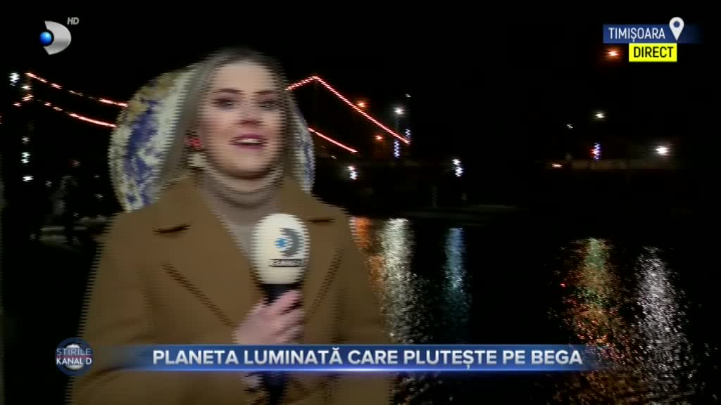 „O sferă uriașă, luminată, plutește pe Bega, aproape de centrul Timișoarei. Spectacolul este impresionant în special după lăsarea întunericului. Colega mea, Iulia Dumitrașcu, este în direct. Iulia, bună seara. Care este scopul acestei instalații?”, a transmis Christian Sabbagh, prezentatorul Știrilor Kanal D.